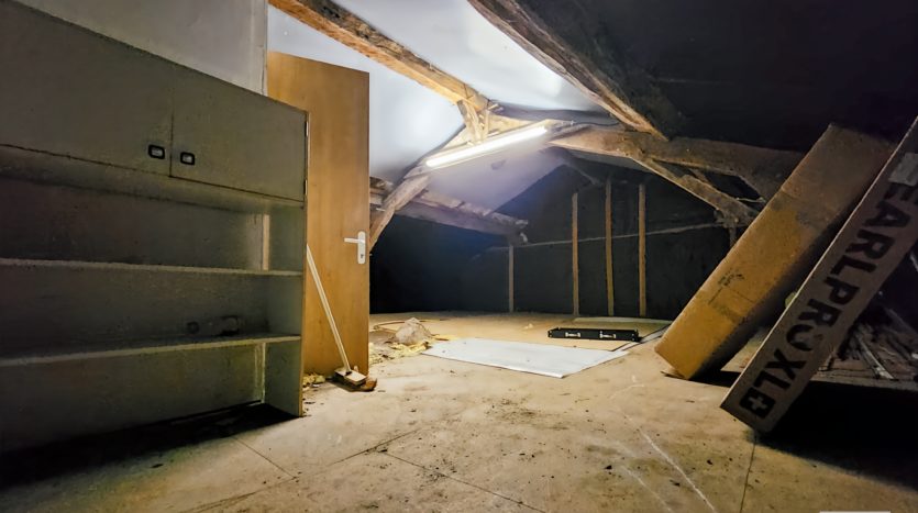 Le sous-sol se compose d’un garage de 65,10 m², de deux pièces (12.25 m², 17,05 m²), d’une cuisine (16.30 m²), d’une salle d’eau avec WC (5.80 m²).